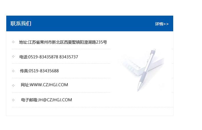 傳真:0519-83435688    郵編:213135    網址:WWW.czjhgj_com.hunanboyuan.com    電子郵箱:JH@czjhgj_com.hunanboyuan.com